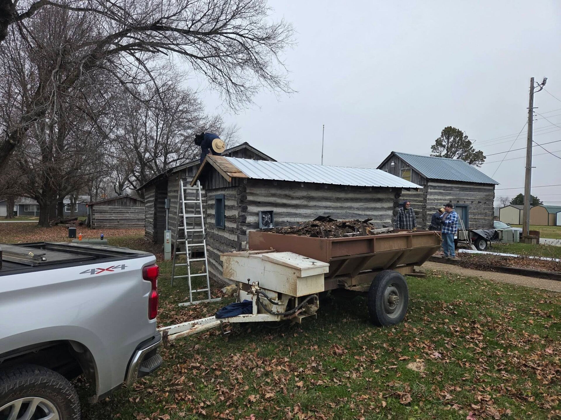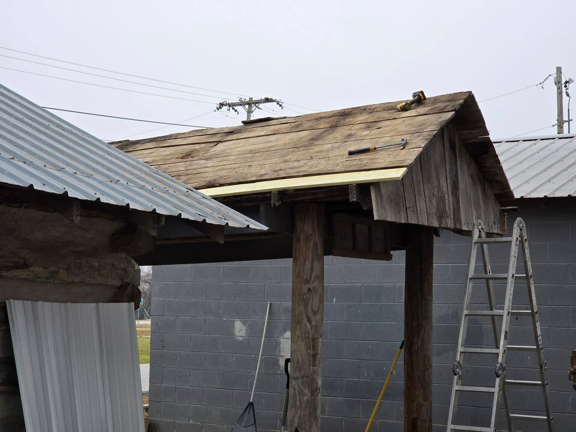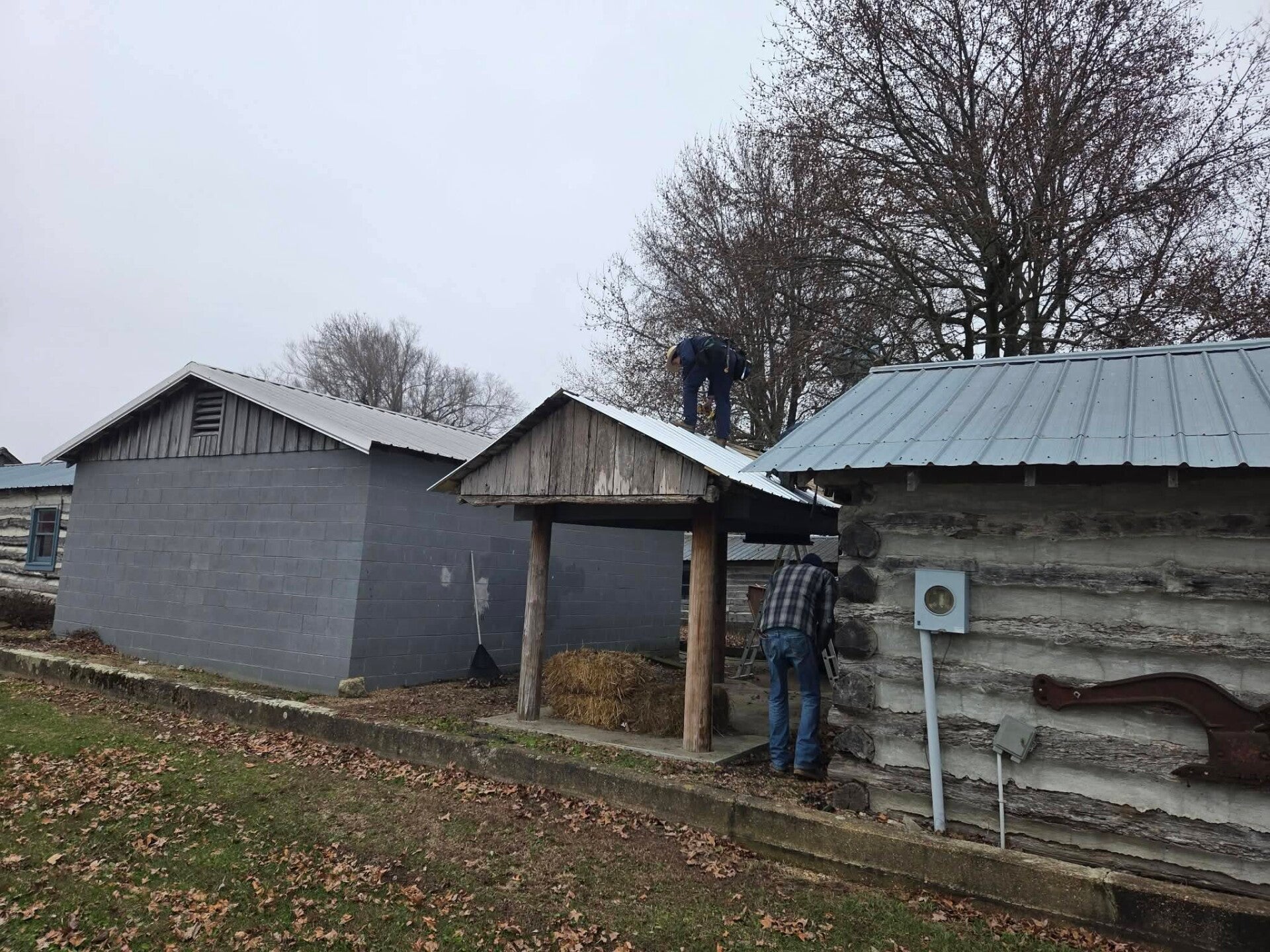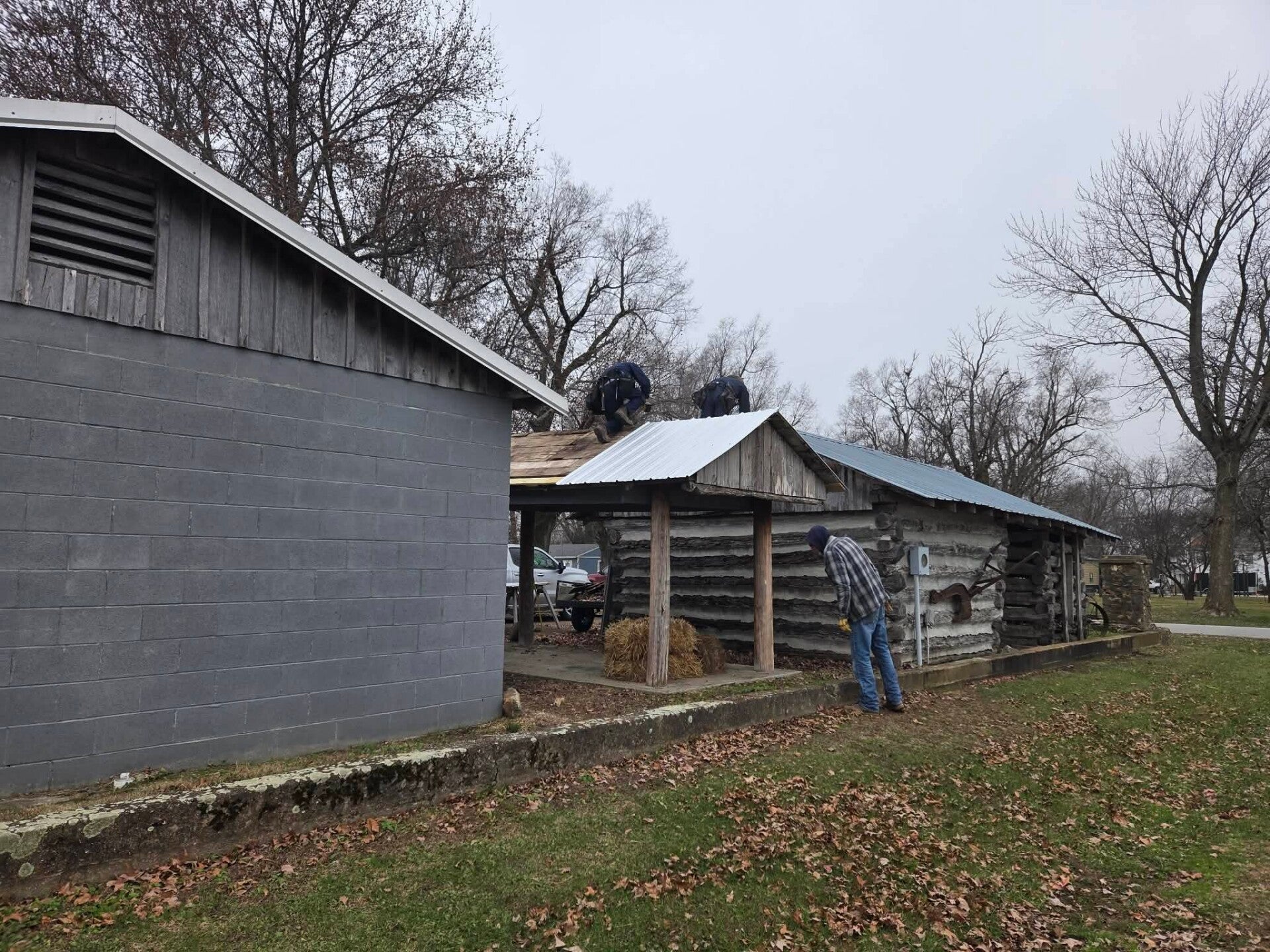 The pictures below show the progress on work projects at the village! On December 13th, 2024, Beyer's Lawn Services put the roof on the 1860 Corn Crib/Ice Cream Shack. Now that this building has a new roof it is going to be set up as the concession stand/Ice Cream Shack for the monthly Cruise-Ins! It was used in the past as an Ice Cream Shack for Ice Cream Socials!