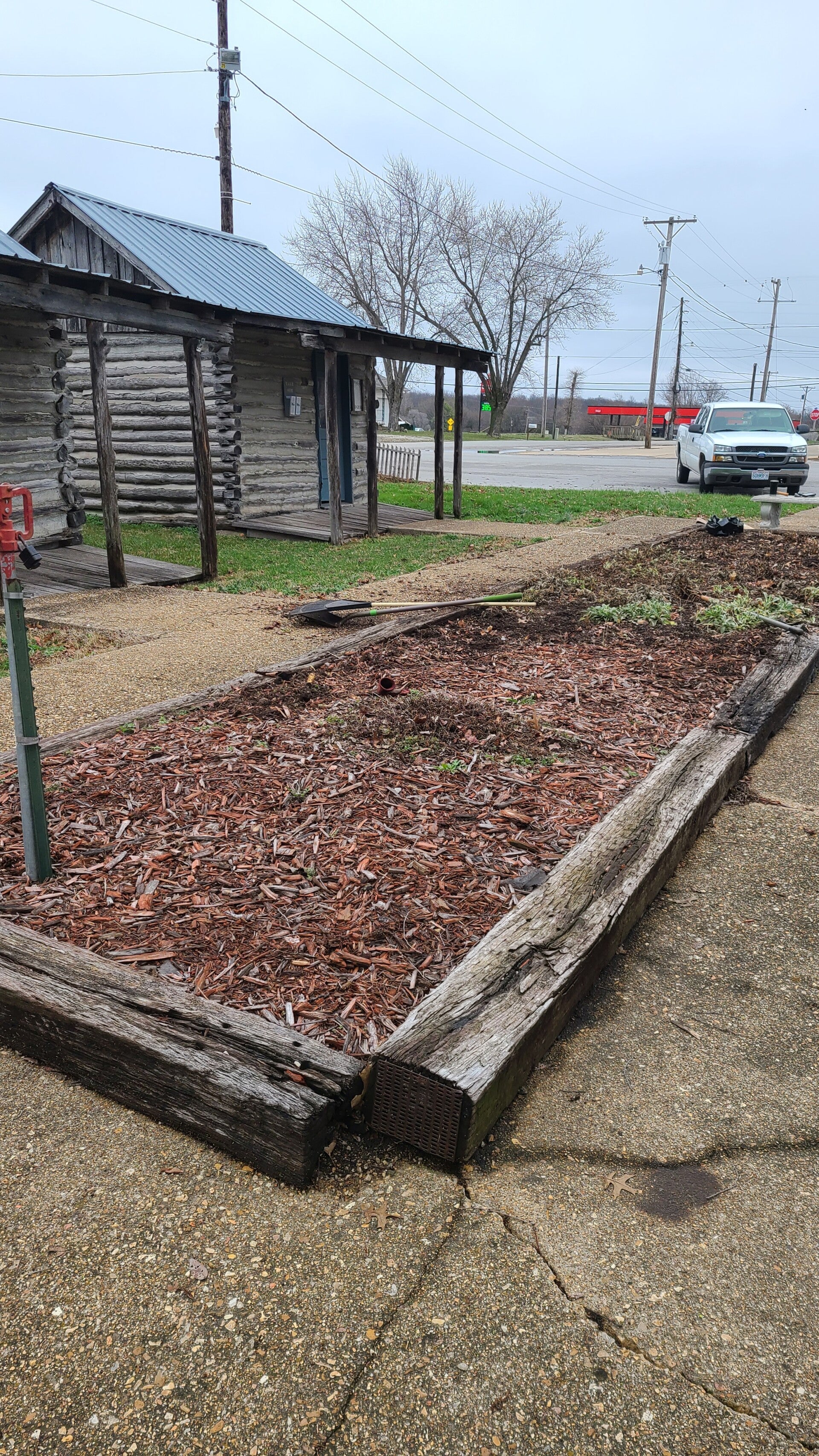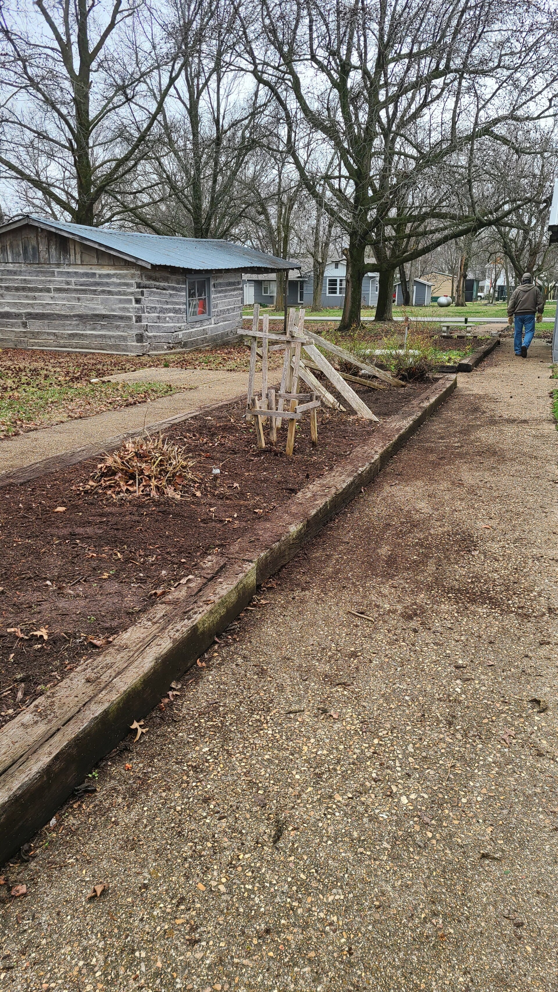 Started cleaning out the gardens and will mulch the flower gardens, but plan on adding pea gravel to the old implement area next to the 1848 Stable!