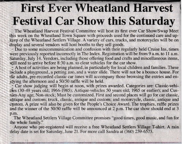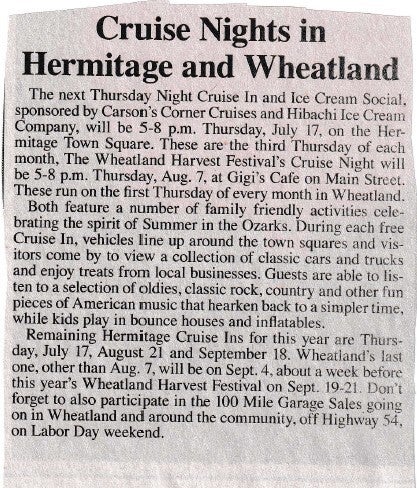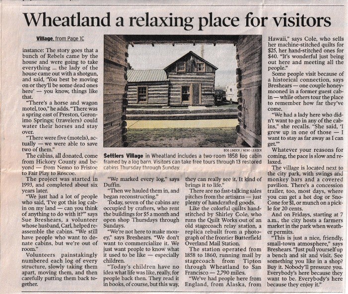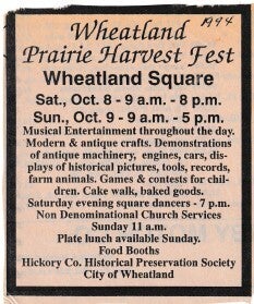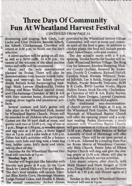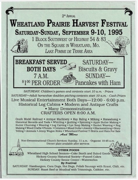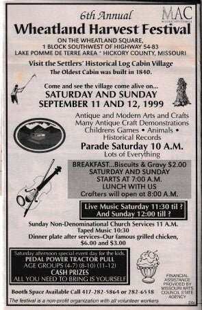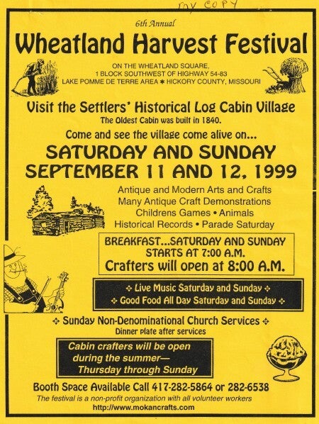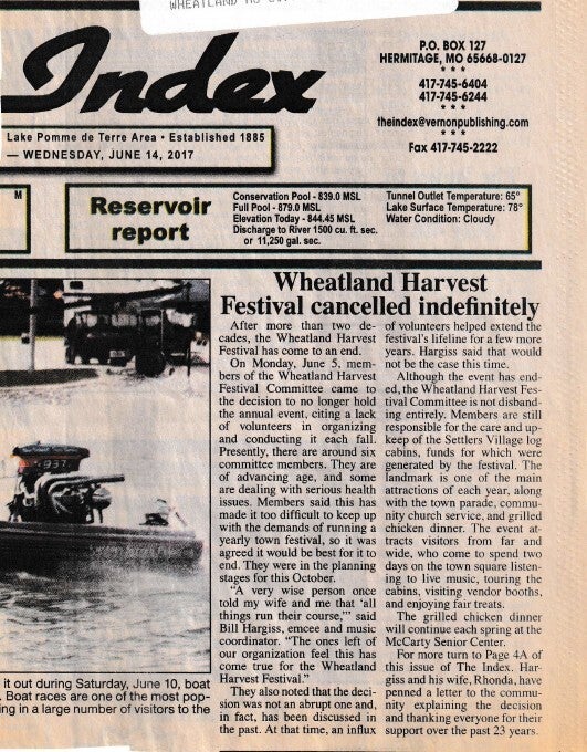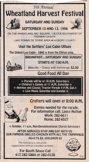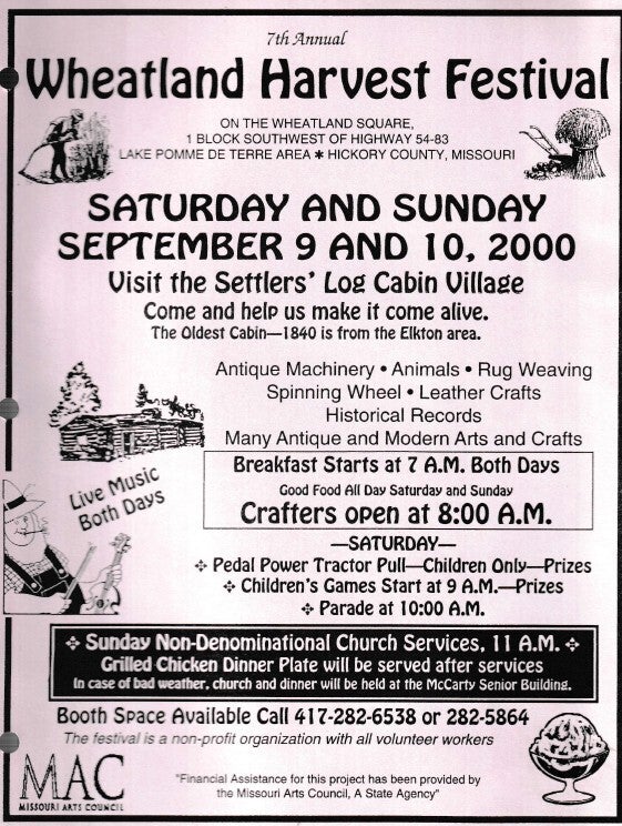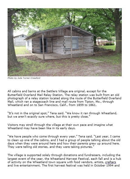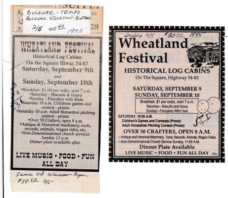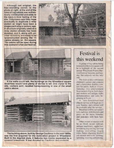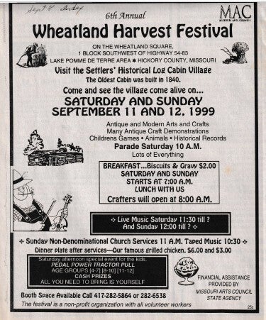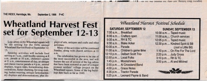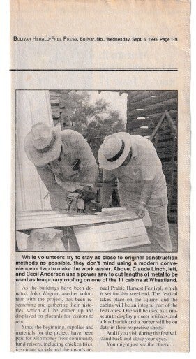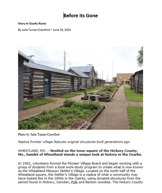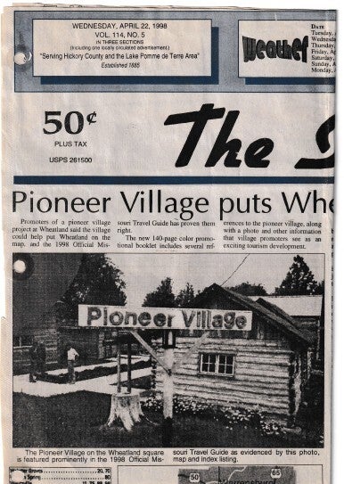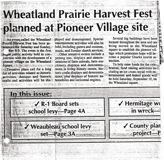 When the Wheatland Missouri Settler's Village first started it was called the Pioneer Village, but they changed the name to what it is today! Let's take a trip down memory lane! Unfortunately, there are a lot of gaps in the history! We will have to contact the Index to get older news articles on the years that are missing!
