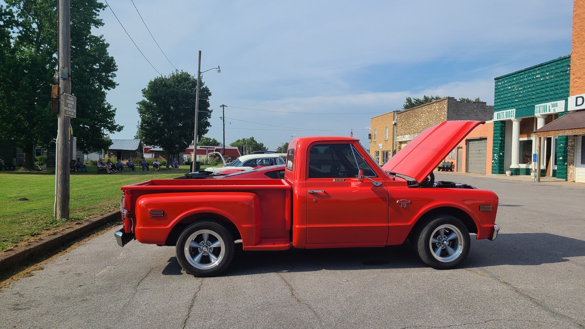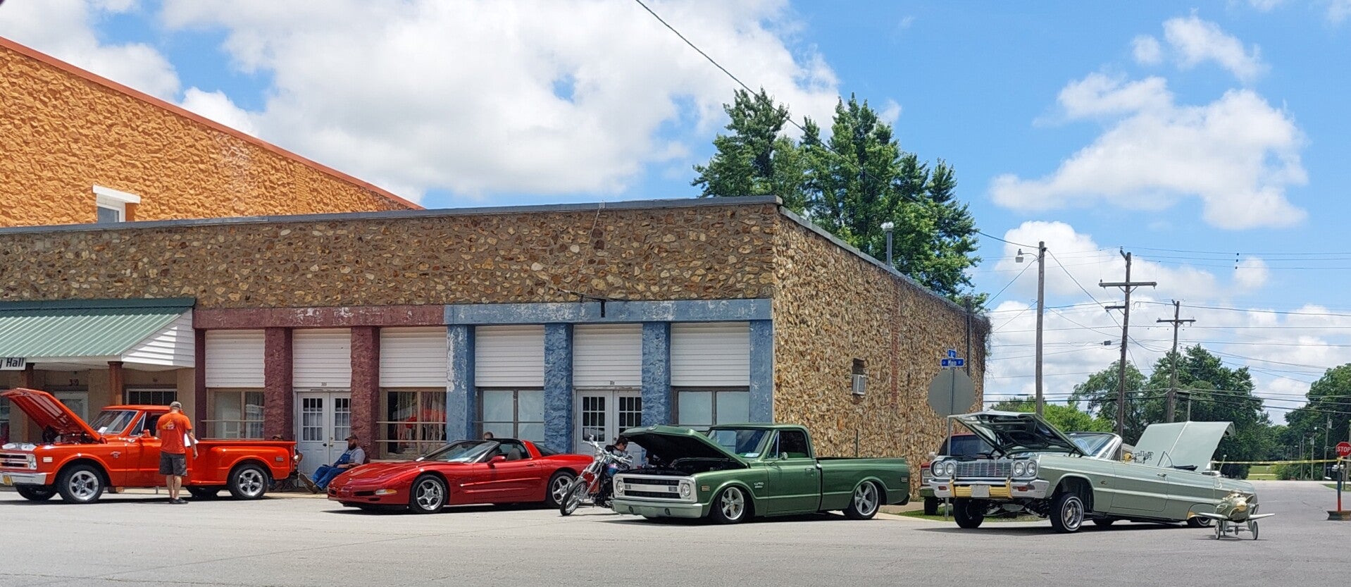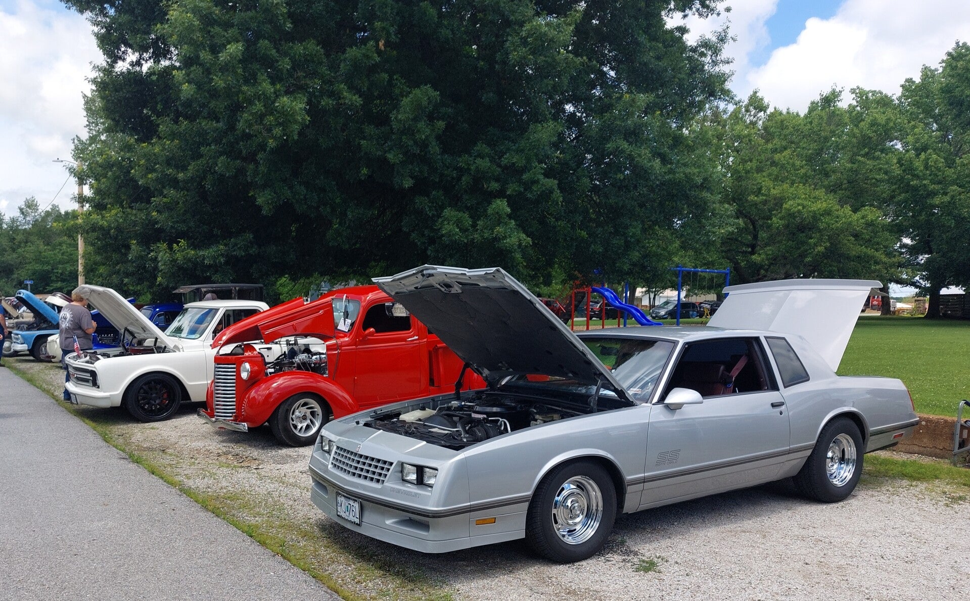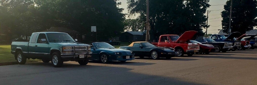 This is the first cruise-in and it was a huge success for the 1st one! Lori Locke and Clint Dinkins were added as live music to later events (weather & health permitting). If they aren't able to perform, we have pre-recorded music playing and food service out of the cookshack!