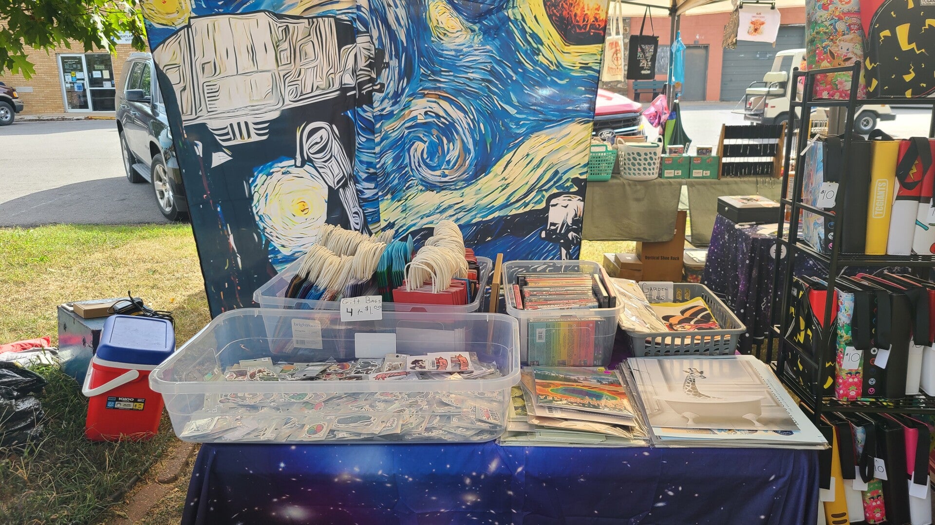 This is the first 100-Mile Garage Sale Event we participated in for the Spring. We were rained out, but one brave vendor (Aimless Shopping) stayed with us all weekend. We put them in the Ice Cream shop to stay dry, and that's how we found out it was leaking really bad!
