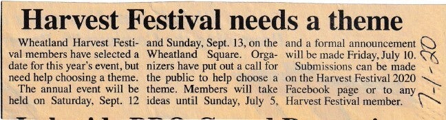 2020 - 27th Annual Harvest Festival & Other News