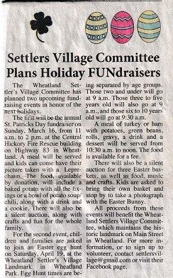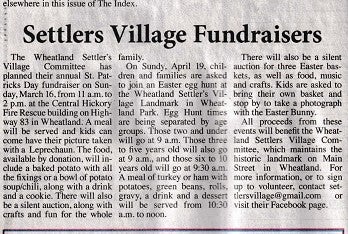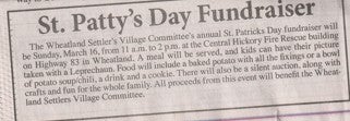 This was the first year of COVID! It may also be the first year of the St. Patrick's Day - Potato Bake Fundraiser. This fundraiser started at the McCarthy Senior Center but has since been moved to the Central Hickory Fire Rescue facility in Wheatland. This also may be the first year that the Lucas 50/50 Raffle started! Due to the gaps in the paperwork, we hope to continue searching for articles at the Index and filling in more information at a later date!